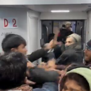 युवकों द्वारा की जा रही मारपीट का किसी यात्री ने वीडियो बनाकर कर दिया वायरल।