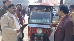 परिवहन विभाग अमेठी द्वारा जिलाधिकारी कैंप कार्यालय के नजदीक सड़क सुरक्षा एवं यातायात नियमों के प्रति आम जनमानस को जागरूक करने हेतु नुक्कड़ नाटक का आयोजन किया गया एवं सड़क सुरक्षा संबंधी पंपलेट का वितरण किया गया ।साथ ही परिवर्तन दल अमेठी द्वारा लगभग 35 वाहनों में रेट्रो रिफ्लेक्टिव टेप लगाने की कार्यवाही भी की गई ।जिला सड़क सुरक्षा समिति की बैठक में जिलाधिकारी महोदय द्वारा ई-रिक्शा के लिए निश्चित रूट प्रणाली लागू किए जाने एवं ई-रिक्शा के निश्चित रूट हेतु कलर कोड निर्धारित किए जाने के निर्देश के अनुपालन में लगभग 50 ई रिक्शा में निश्चित रूट हेतु कलर कोट करते हुए ई-रिक्शा चालकों को रूट प्रणाली के संबंध में जानकारी प्रदान की गई ।साथ ही साथ प्रवर्तन दल ने कार्यवाही करते हुए 30 चालान हेलमेट के अभियोग में हाई सिक्योरिटी नंबर प्लेट ना लगे होने के अभियोग में 05 चालान ,बीमा के अभियोग में 10 चालान फिटनेस के अभियोग में 07 तथा बकाया टैक्स के अभियोग में 02 वाहनों का चालान/ बंद करने की कार्यवाही की गई।